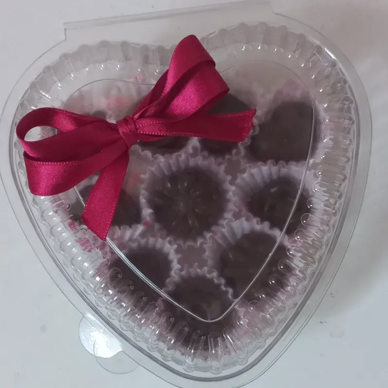 Envase en forma de corazón con 10 bombones adornada con lazo