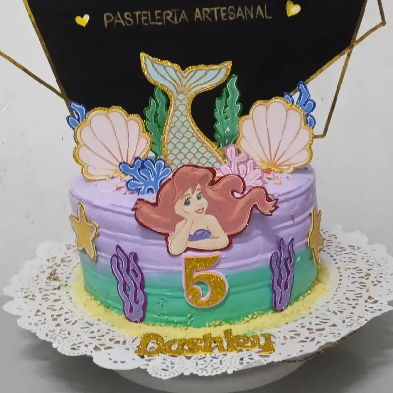Cake Temática sirenita. Relleno dulce de leche y masa natural