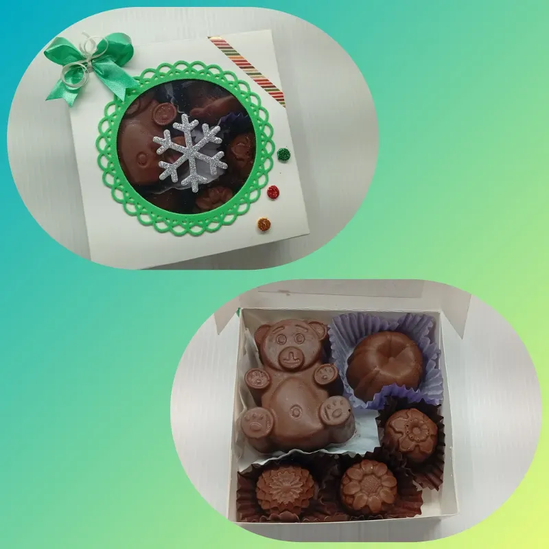 1 Oso Gordito Relleno de Galletas Mar铆a 1 Bomb贸n Relleno de Mora 3 Bombones Macisos Chocolate con Leche