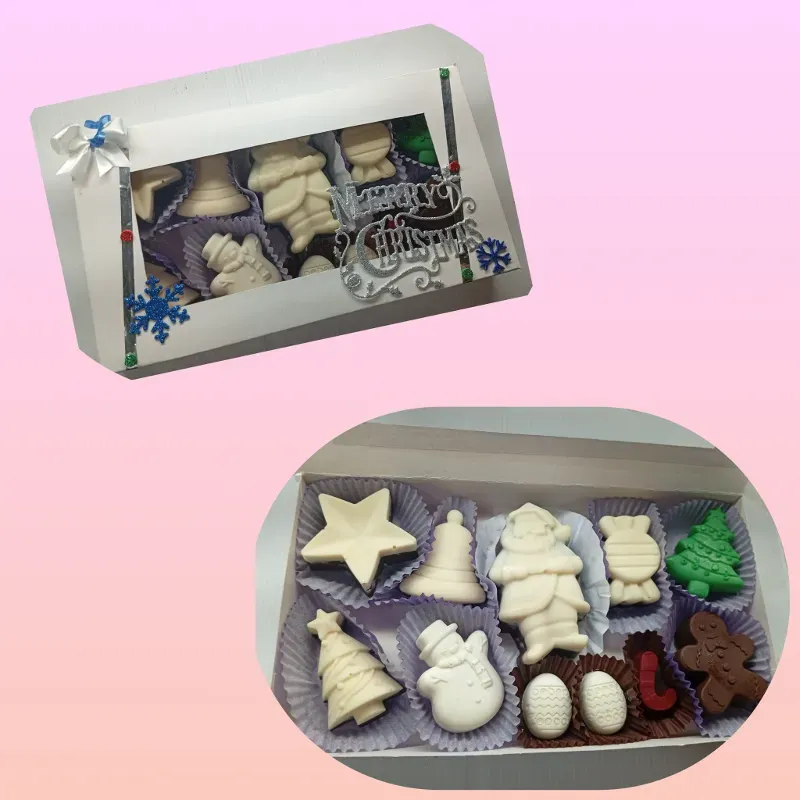 馃搷1 Figura Extra Grande Marmoleada Rellena de Galletas Mar铆a 馃搷4 Bombones Macisos Marmoleados 馃搷2 Bombones Macisos de Chocolate Blanco 馃搷1 Bomb贸n Macizo de Chocolate Semi Amargo 馃搷3 Bomboncitos Macisos de Chocolate Blanco