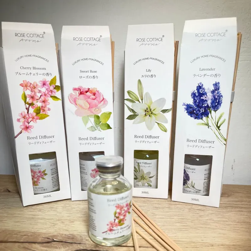 Lavanda: Calma · Relajación · Equilibrio. Ayuda a reducir el estrés y la ansiedad. Lirio: Pureza · Armonía · Sensibilidad. Asociado con la calma emocional y la paz interior. Sakura (Flor de cerezo): Renovación · Bienestar · Optimismo. Evoca sensaciones de renovación y frescura emocional. Magnolia: Equilibrio · Bienestar · Confort. Ayuda a relajar la mente.