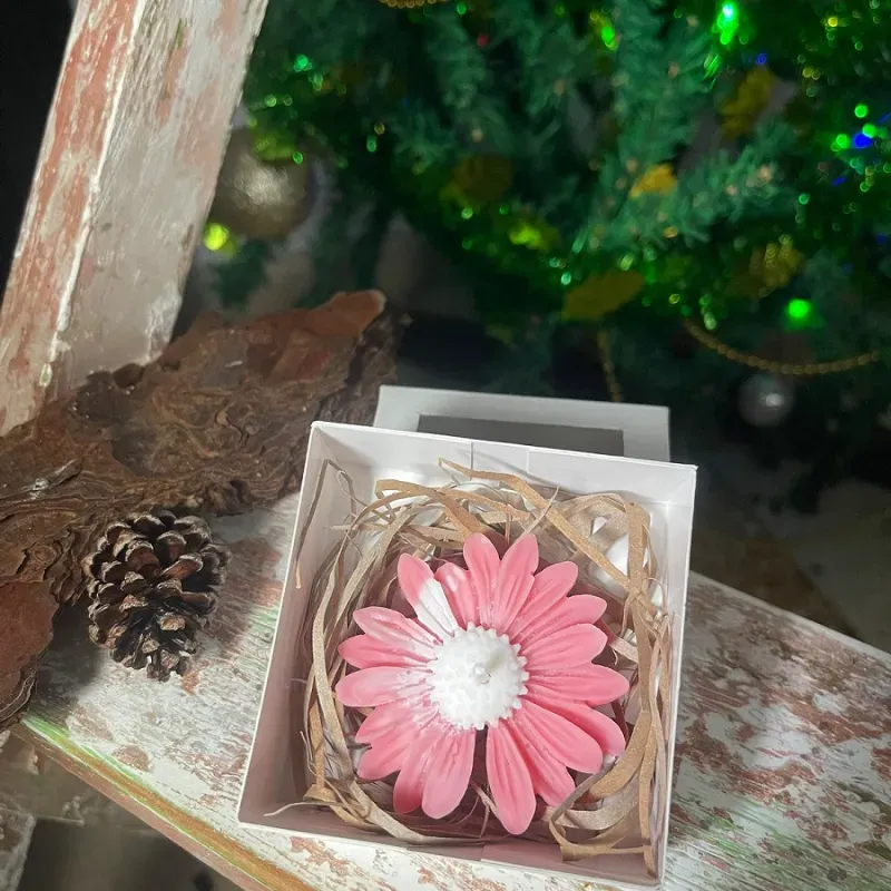 La presentación es en una pequeña cajita con tapa transparente y decoración floral.