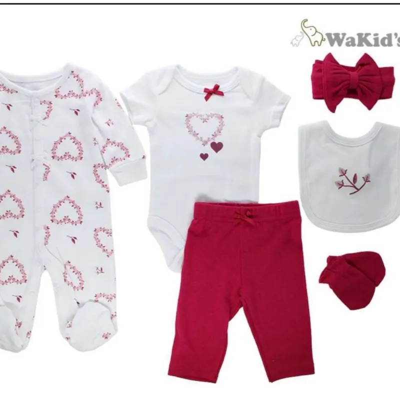 conjunto rojo para bebés niñas (Mono enterizo,body, pantalon,lazo grande, babero y medias)