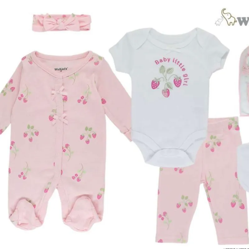 Conjunto para bebés Niñas (Mono enterizo, body, pantalon, cinta para el cabello y babero)