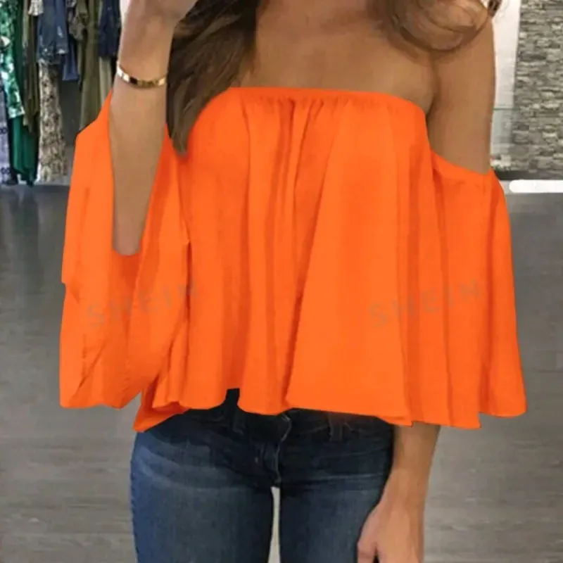 Camisa de hombro descubierto de unicolor para ocio en vacaciones