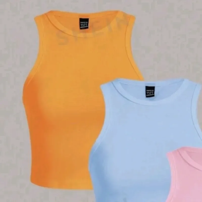Camisetas de tirantes ajustadas de unicolor con cuello redondo,aptas para el verano