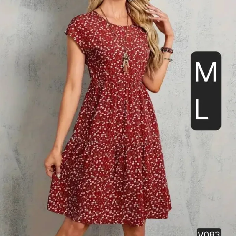 Encantador Vestido Línea A con Estampado Floral y Cuello Redondo - Elegante Manga Corta, Uso Cómodo, Perfecto para Primavera y Verano, Ropa de Mujer, Vestido Estiloso y Versátil para Actividades al Aire Libre