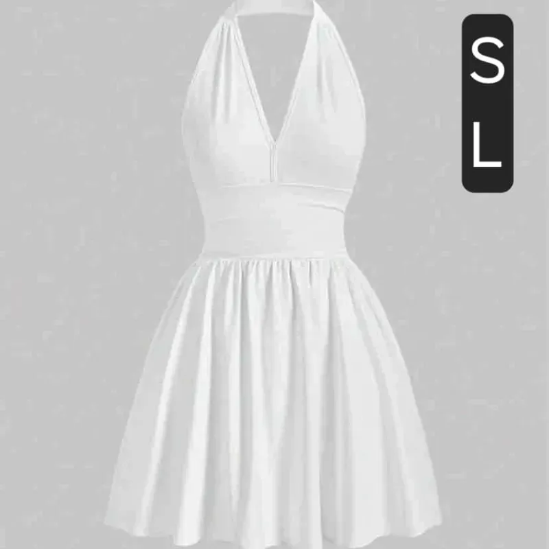 Vestido con cuello Halter en V , cintura ceñida y espalda descubierta