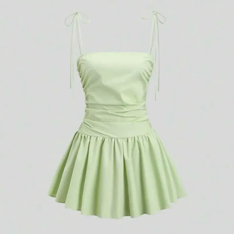 Vestido corto y plisado con cintura fruncida en forma de linea A