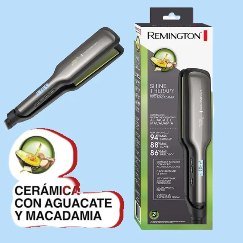 Plancha Remington 230*C/ 450*F Cerámica avanzada con microacondicionadores de aguacate y macadamia. Especial para realizar keratinas