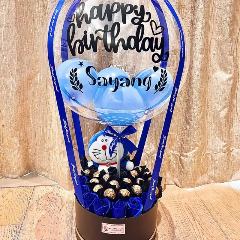 Hermoso Arreglo con globo, bombones Ferrero Rocher y peluche