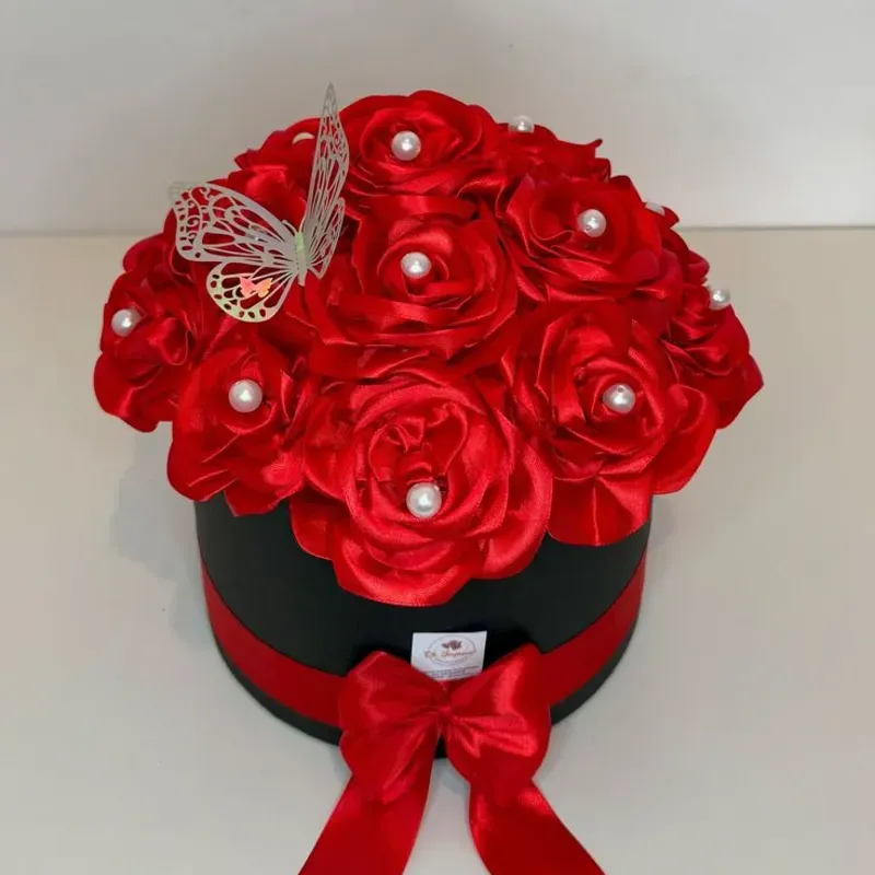 Arreglo de 15 Rosas Eternas decorado con una mariposa y perlas en cada Rosa