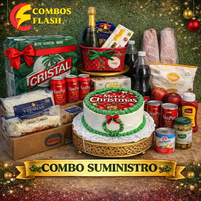 ✨✨✨COMBO SUMINISTRO✨✨✨ 10 LB DE CERDO IMPORTADO 1 CAJA DE CERVEZA 1 CAJA DE HELADO 1 CAKE NAVIDEÑO 2 PACK DE ARROZ 1 PACK DE FRIJOLES 1 PACK DE PAPÁ PREFRITAS 2 POMOS DE REFRESCO 2 Lb DE QUESO GOUDA 1 CESTAS NAVIDEÑA ⭕️SIDRA ⭕️GALLETAS NAVIDAD ⭕️TURRÓN 5 MALTAS 1 LECHE CONDENSADA 4 MANZANAS 1 PACK DE CROQUETAS 1 KETCHUP 1 POMO ACEITUNAS 2 LB DE JAMÓN BRAVO