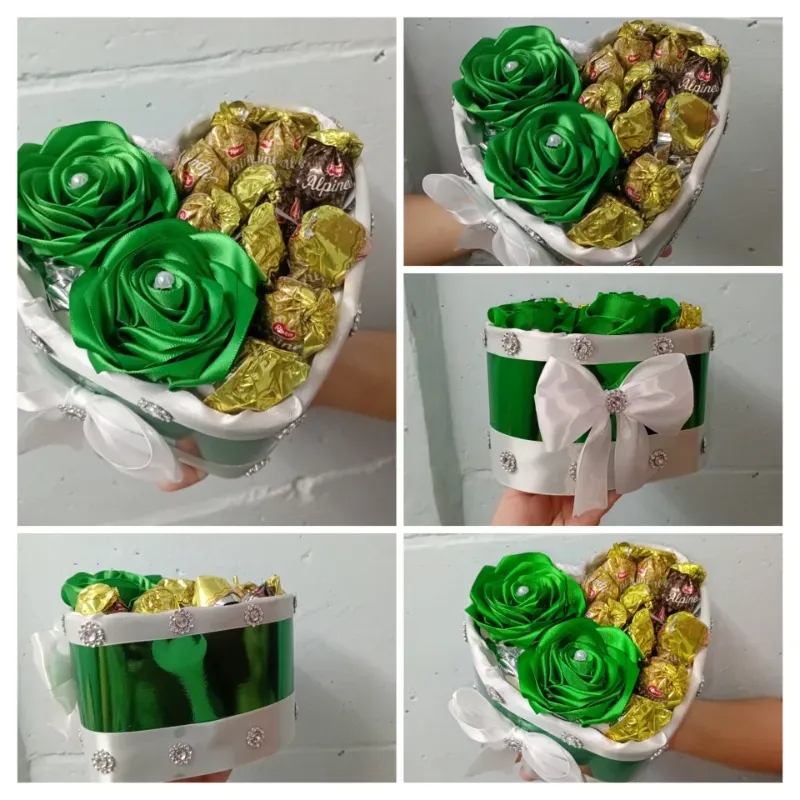 Incluye Usted elige el color 2 rosas eternas 10 bombones o 15 caramelos Decoración