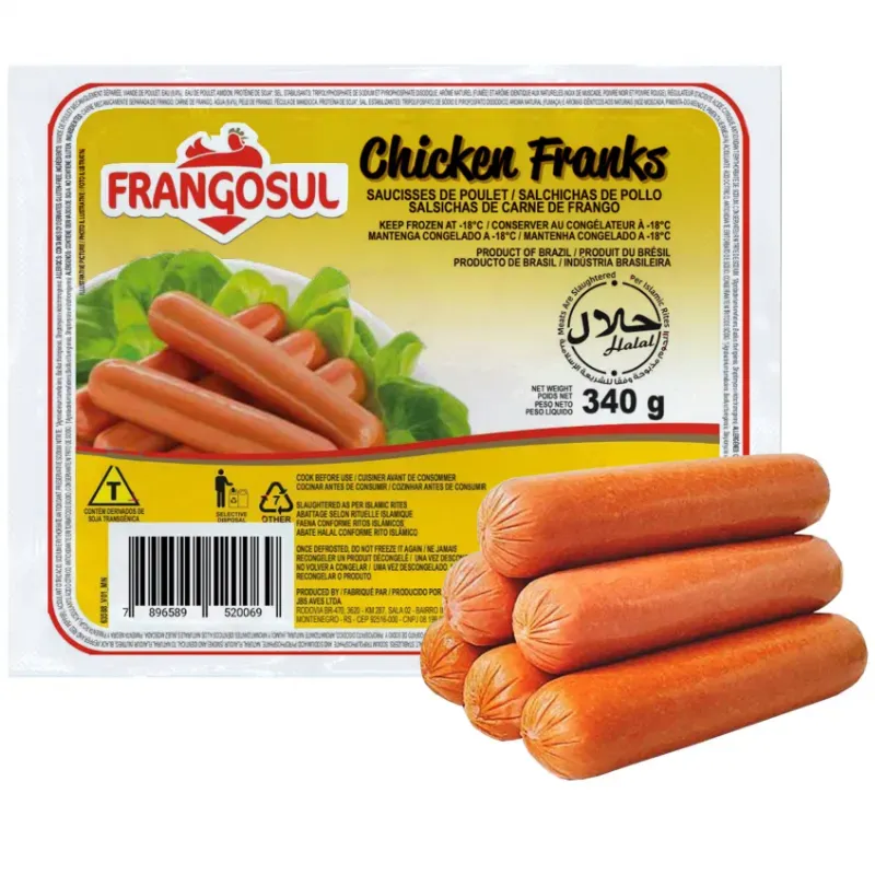Ingredientes: carne de pollo separada mecánicamente, carne de pollo, agua, piel de pollo, almidón de mandioca, proteína de soya (agrobacterium spp.), Sal, estabilizantes: tripolifosfato de sodio y pirofosfato ácido de sodio, sabor natural (humo) y idéntico al sabor natural (nuez moscada, pimienta roja y pimienta negra), acidulante ácido cítrico, eritorbato sódico antioxidante conservante: nitrito de sodio.