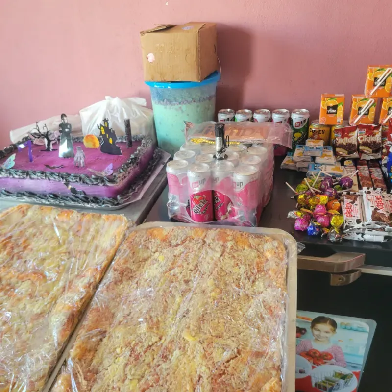 Kake de bandeja 4lt de ensalda fría +30 tartaletas 4lt de helado + 30 conos 2 pizzas familiares de jamon 1 caja de refresco 1 Caja de malta Combo de confituras
