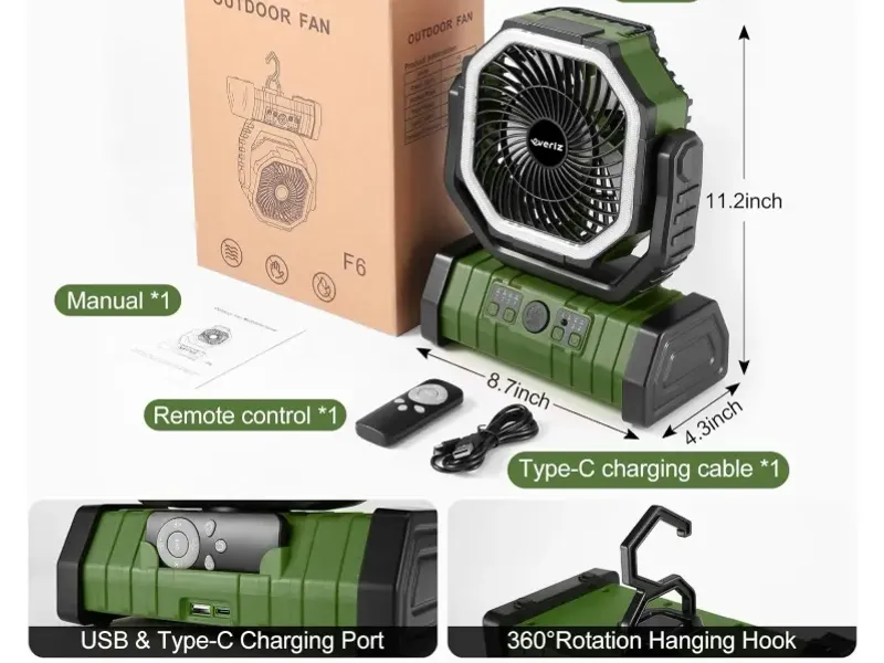 • Trae además un soporte en la parte inferior donde se puede colgar el ventilador y así girarlo hasta 360⁰ según lo desee.