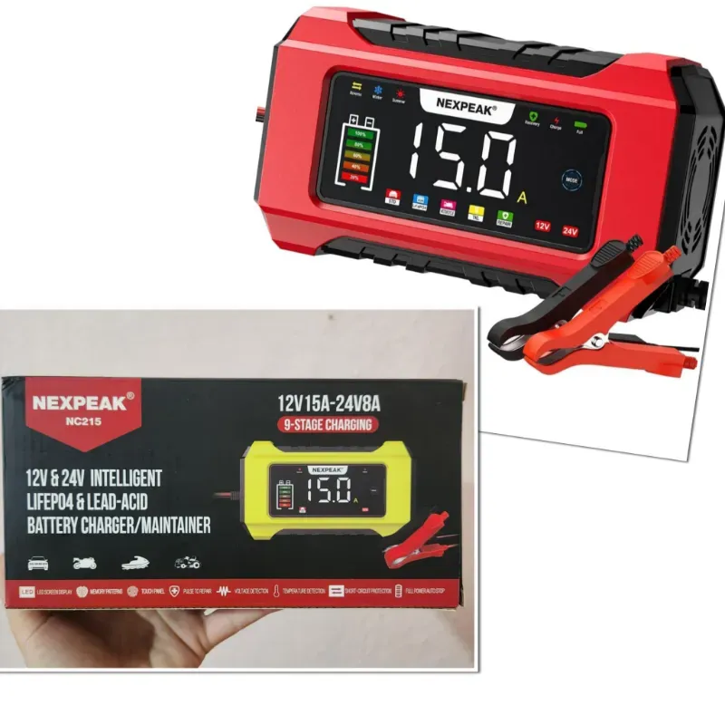 Cargador Inteligente de 12 y 24 V , con una corriente maxima de craga de hasta 15 A , útil para cargar seguras a baterias de LiFePo4 y batería de plomo-ácido.