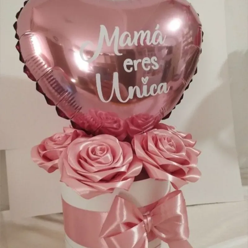 Cajita Redonda con Globos de Corazón y Flores a juego