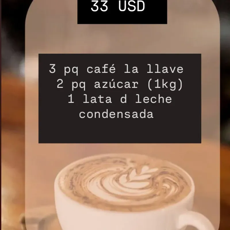 3 pq café la llave 2 bolsas de azúcar (1kg) 1 lata d leche condensada
