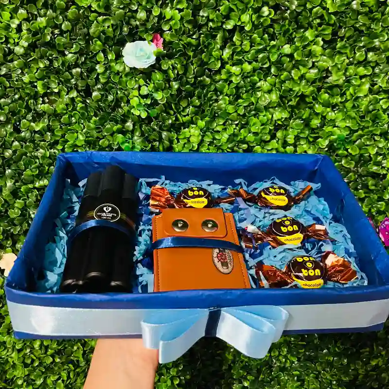 Regalo para caballero, que incluye un perfume, veguero, una billetera y bombones