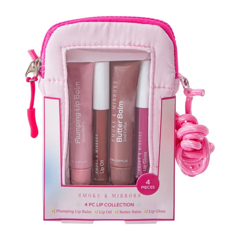 Colección de labiales Smoke & Mirrors de 4 o 5 piezas, que incluye un bálsamo labial con efecto voluminizador (sabor fresa) y un bálsamo labial de mantequilla (sabor café helado).