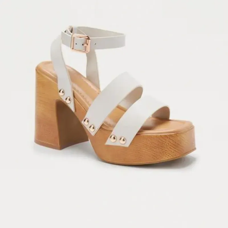 Sandalias blancas de tacón cuadrado