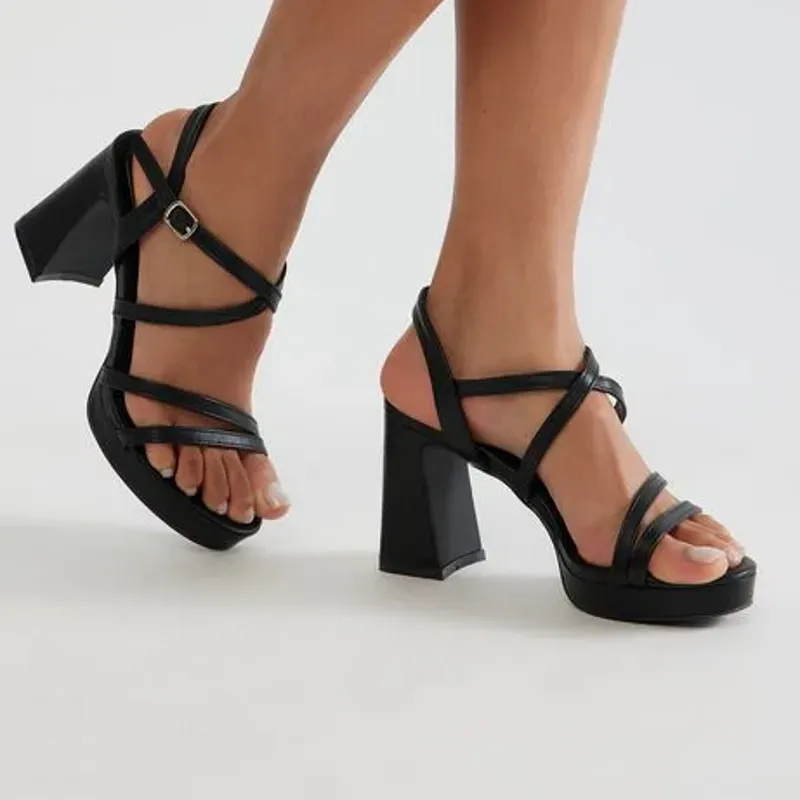 Sandalias negras de tacón cuadrado