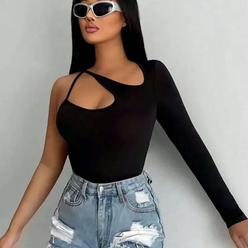 Top Negro de Manga Larga con Escote Asimétrico