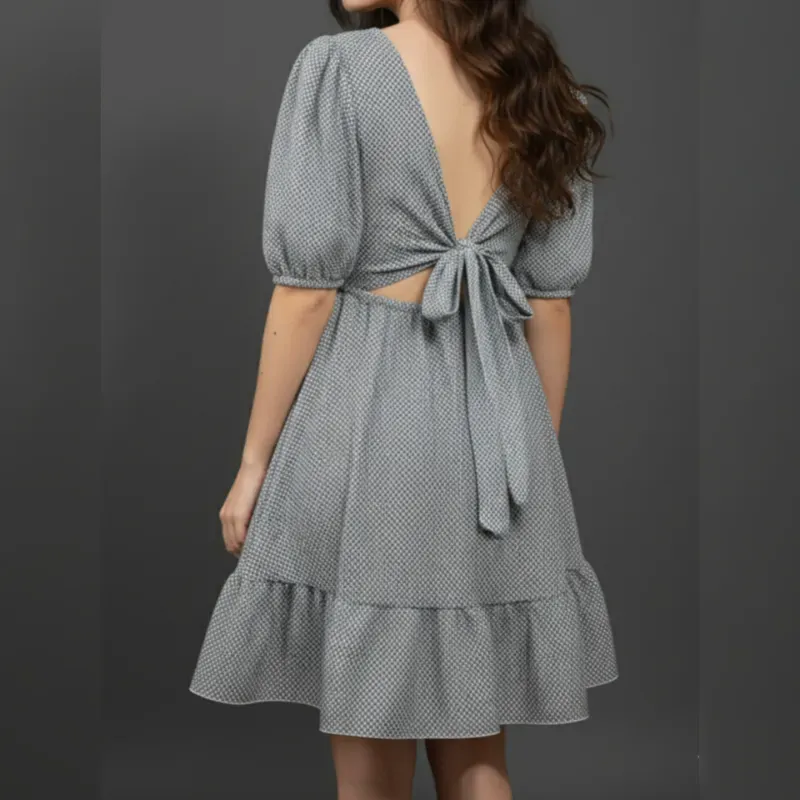 Vestido con lazo en la espalda, mangas globo y vuelo