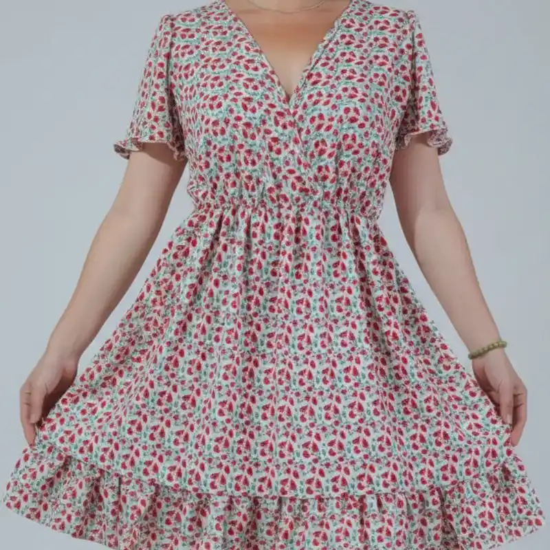 Vestido escote V con lazo en la espalda ajustable y vuelo