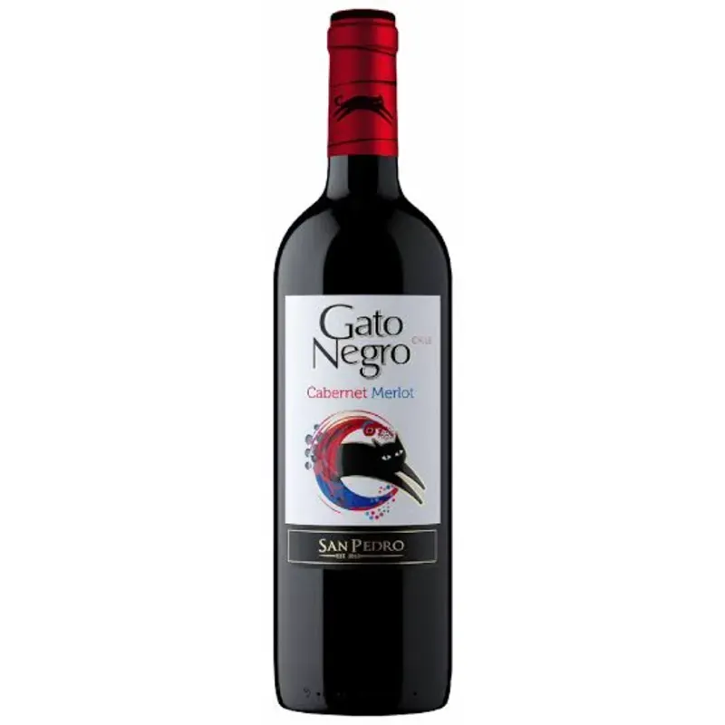 Vino tinto Gato Negro Merlot es un vino chileno, suave y afrutado, conocido por su versatilidad y excelente relación calidad-precio, recomendado para quienes se inician en el mundo del vino tinto. señas El Gato Negro Merlot es un vino de cuerpo medio con un final agradable, que se caracteriza por sus sabores intensos afrutados y suaves taninos. Es de color rojo rubí intenso con tonos violáceos. En boca es un vino equilibrado, con sabores afrutados y un gusto ligeramente ácido. Descrito como ligero, de trago corto y muy agradable al paladar. Es ideal para acompañar carnes rojas, pato, pavo, ganso, cerdo, jamón y pastas contundentes. También se bebe muy bien solo o con platos ligeros, e incluso puede acompañar aperitivos y postres.