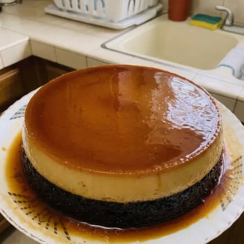Capa de flan y bizcocho de chocolate
