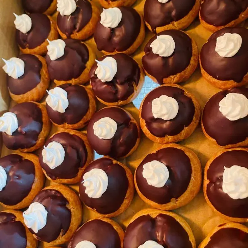 rellenos de crema de chocolate o crema muselina y cubiertos de chocolate
