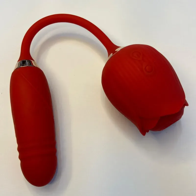 Rosa lamedora de clitoris + Vibrador con empuje. Con carga USB.