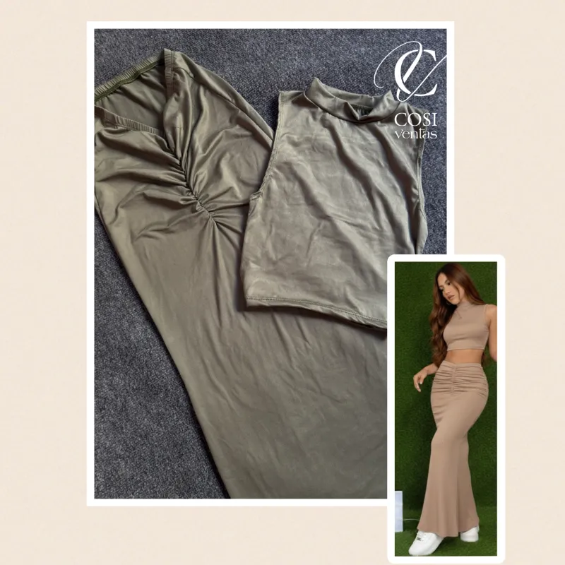 Conjunto verde claro (algodón) de saya larga con pliegue 💕