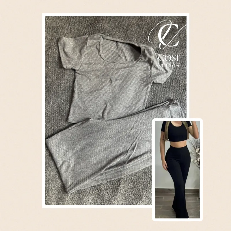 Juego de pantaloneta y blusa (cuello redondo)gris