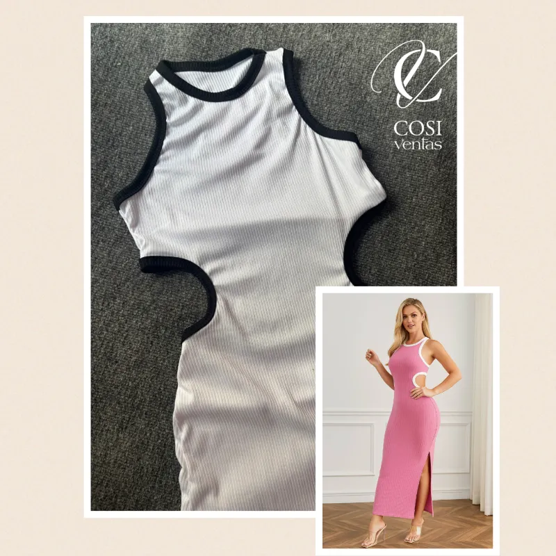 Vestido combinado con abertura lateral (blanco)