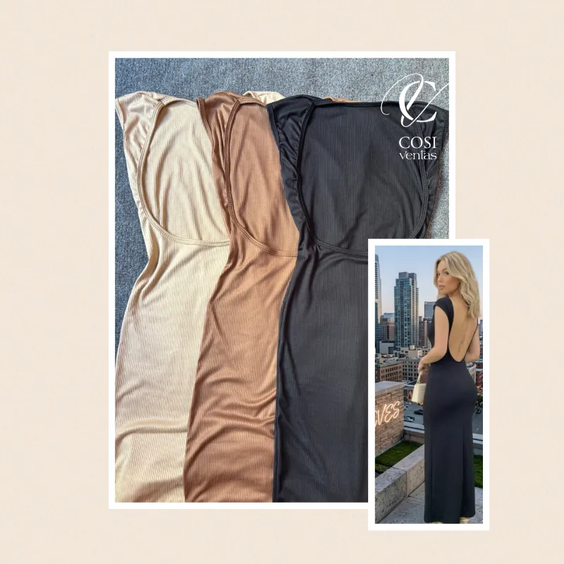 Vestido(tela espagueti)de manga corta con abertura en la espalda