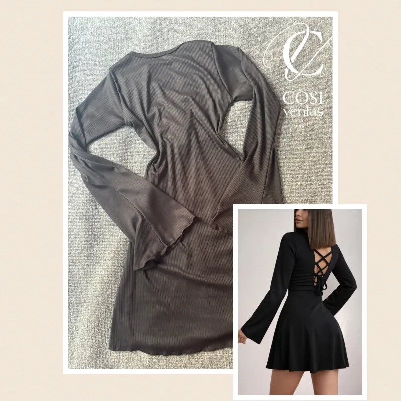 Vestido corto manga larga espalda cruzada en negro
