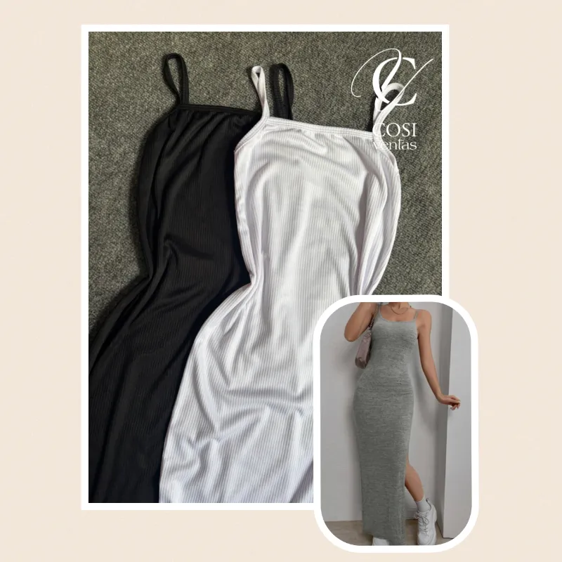 Vestido de tirantes largo abierto al lado) varios colores disponibles