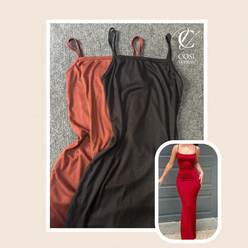 Vestido de tirantes largo/cerrado (tela de espagueti) disponibles varios colores