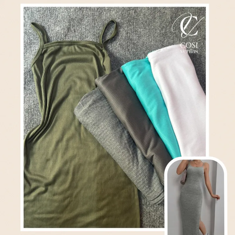 Vestido de tirantes largo abierto al lado) varios colores disponibles