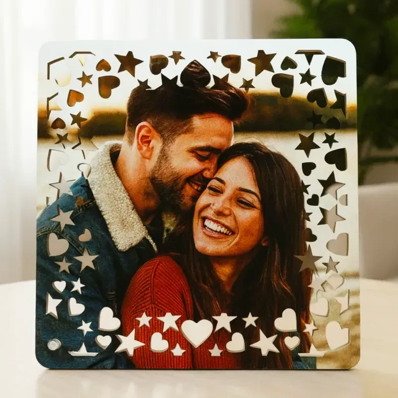 Cuadro MDF decorado con estrellas y corazones