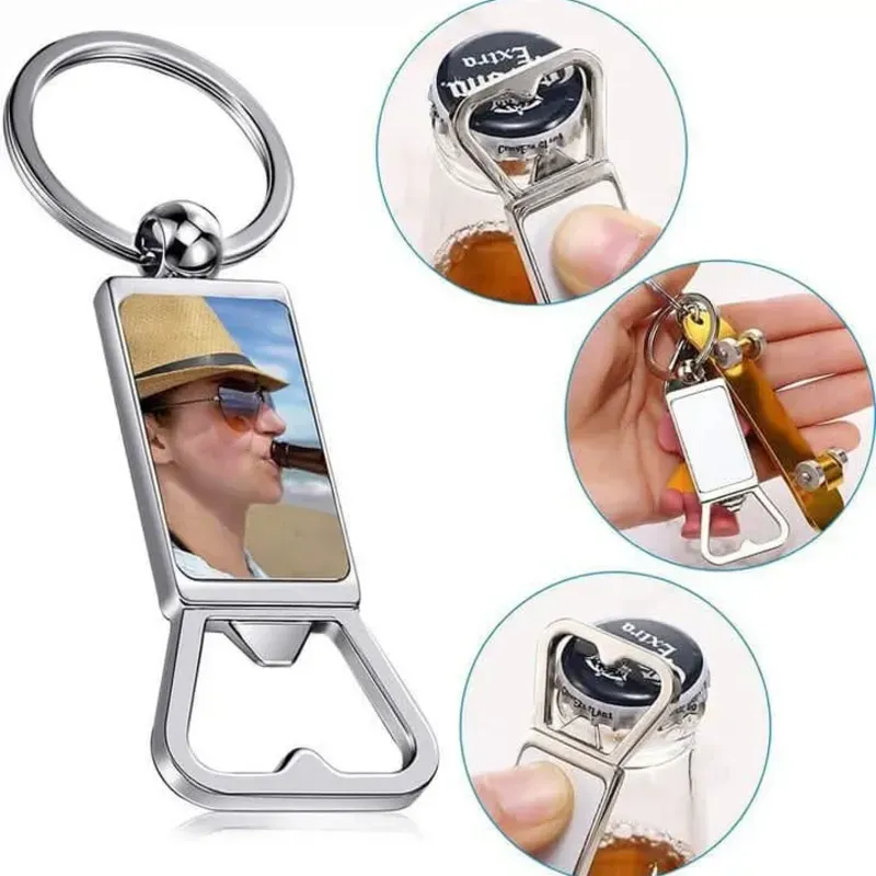 Llavero metálico rectangular con abridor