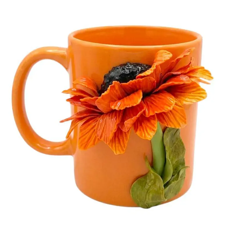 Descubre la combinación perfecta entre elegancia y durabilidad. El girasol, modelado en porcelana fría, se protege con una capa de resina que garantiza impermeabilidad y un brillo intenso. Ideal para disfrutar café, té o cualquier bebida con un toque de encanto único.