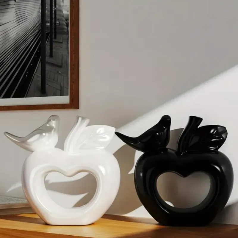 Apple with bird (Manzana con pájaro). Figura decorativa de yeso