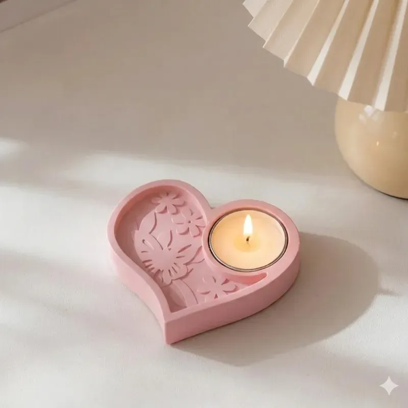 Portavelas de yeso con forma de cor corazón. No incluye vela