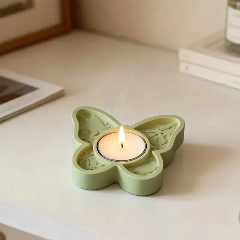 Portavelas de yeso con forma de mariposa. No incluye vela.