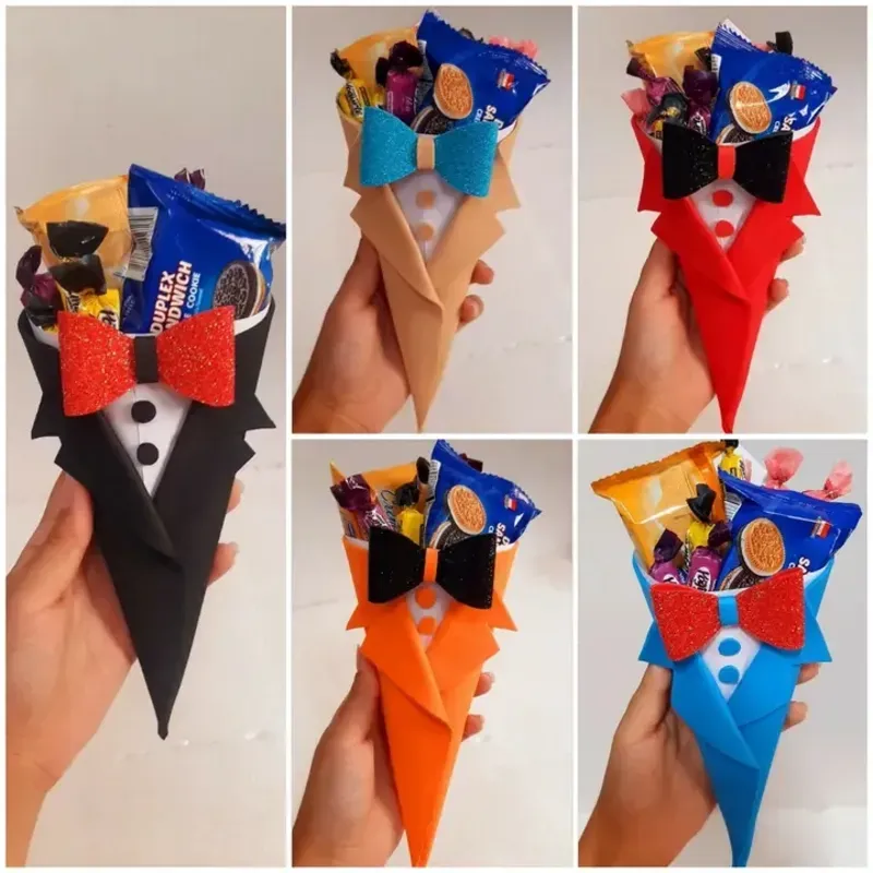 Cono de confituras variadas, con forma de esmoquin, disponibles en el color de su elección